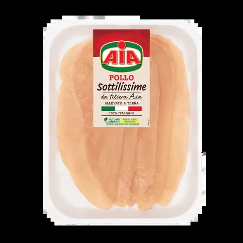 Sottili fette di petto di pollo. Morbidissime e velocissime da cuocere.