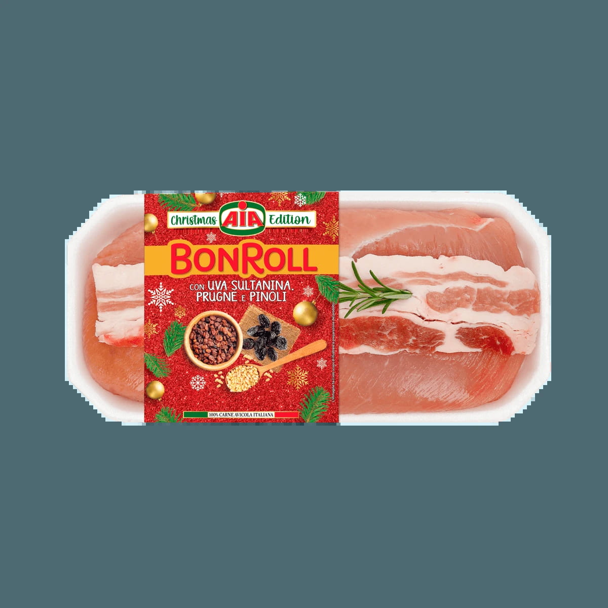Mageres Truthahnfleisch, elegant im Geschmack, dann Pflaumen, Sultaninen und Pinienkerne, mit dem aromatischen Beitrag von Gewürzen und Kräutern und der gemessenen Würze des gekochten Schinkens.