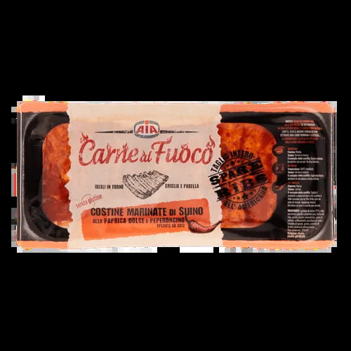 Die Verwendung des gesamten Rippenstücks - SPARE RIBS - nicht in einzelne Rippen geschnitten, unterzogen einer langsamen Garung bei niedriger Temperatur, hält das Fleisch weich und behält alle darin enthaltenen Säfte.