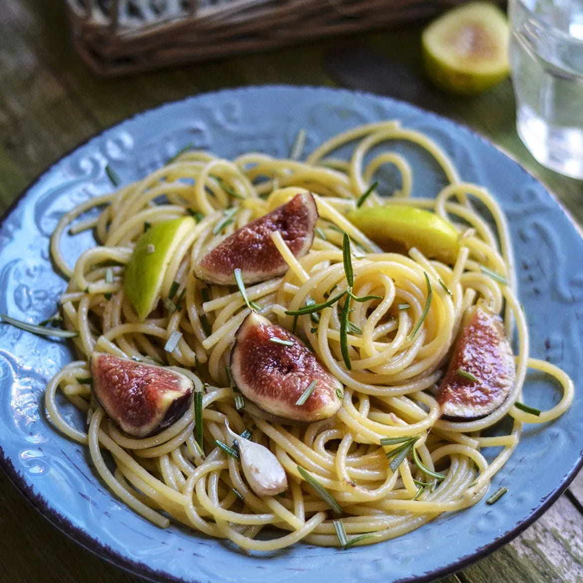 Hier ist das komplette Rezept für Pasta mit Feigen und Speck!