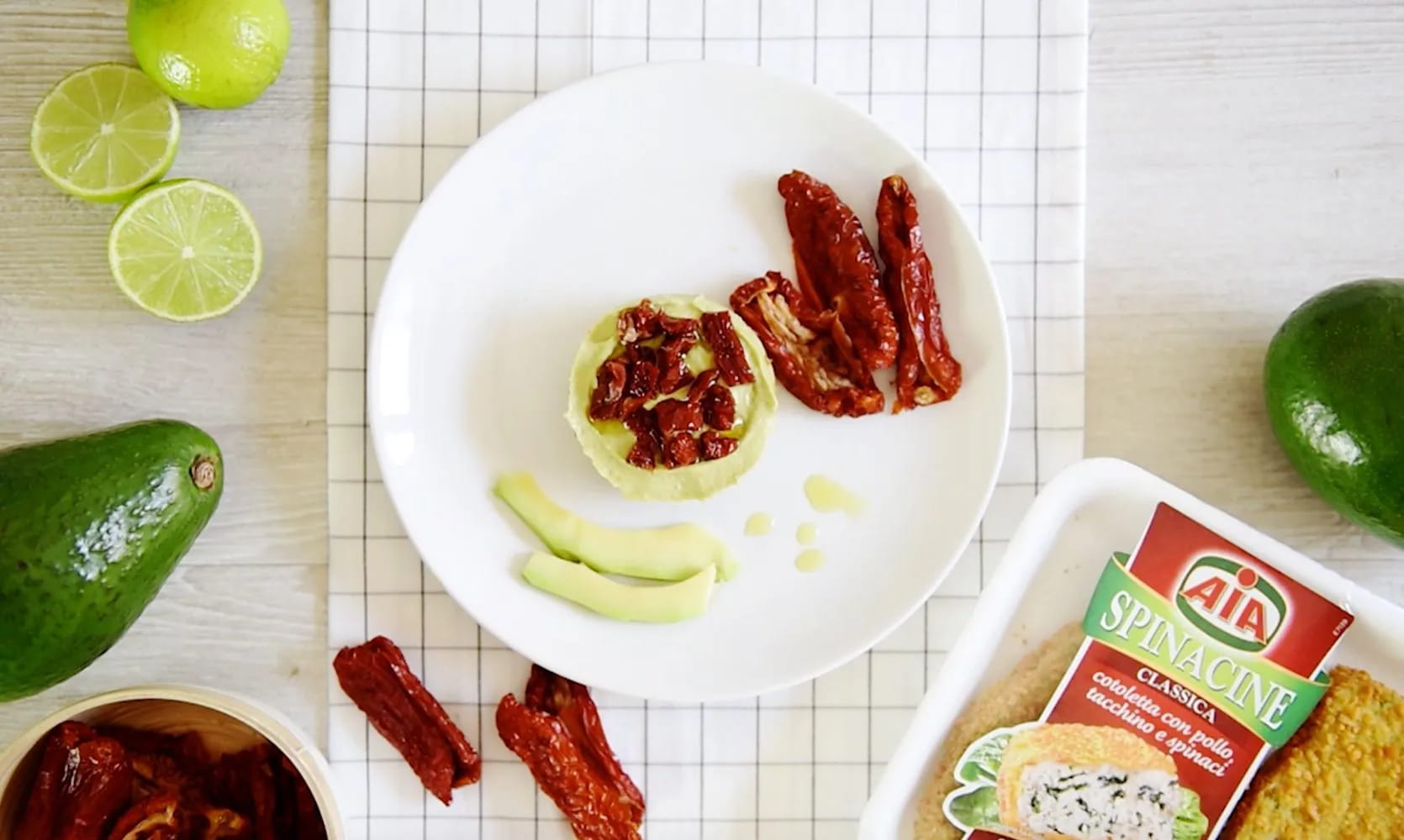 In diesem Gericht umhüllt die Avocado-Mayonnaise die Knusprigkeit der Spinacine AIA und harmoniert perfekt mit dem Geschmack der Panade und des Fleisches, während die getrocknete Tomate einen zusätzlichen Hauch von Geschmack, Duft und Farbe verleiht. Das perfekte Fingerfood für ein Buffet-Dinner oder einen Aperitif mit Freunden während der schönen Jahreszeit, die Spinacine-Kreise mit Avocado-Mayonnaise und getrockneten Tomaten werden wirklich jeden begeistern. Begleiten Sie sie mit einem selbstgemachten Fruchtcocktail oder einer hausgemachten Sauce für ein sensationelles Ergebnis.