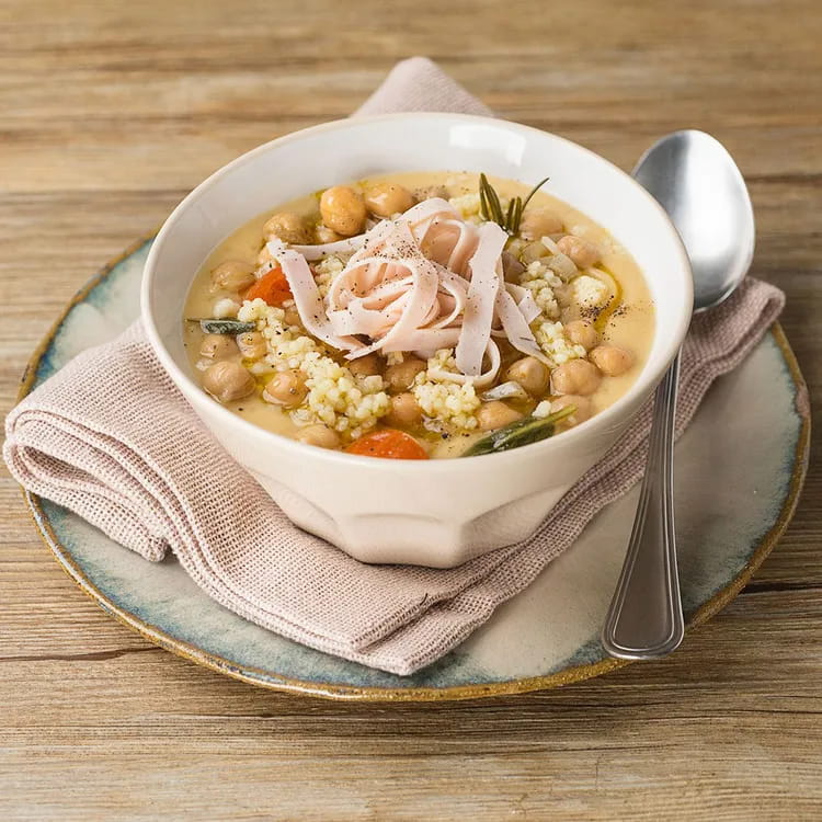 - Vollkorn-Fusilli mit Kichererbsen und Truthahn