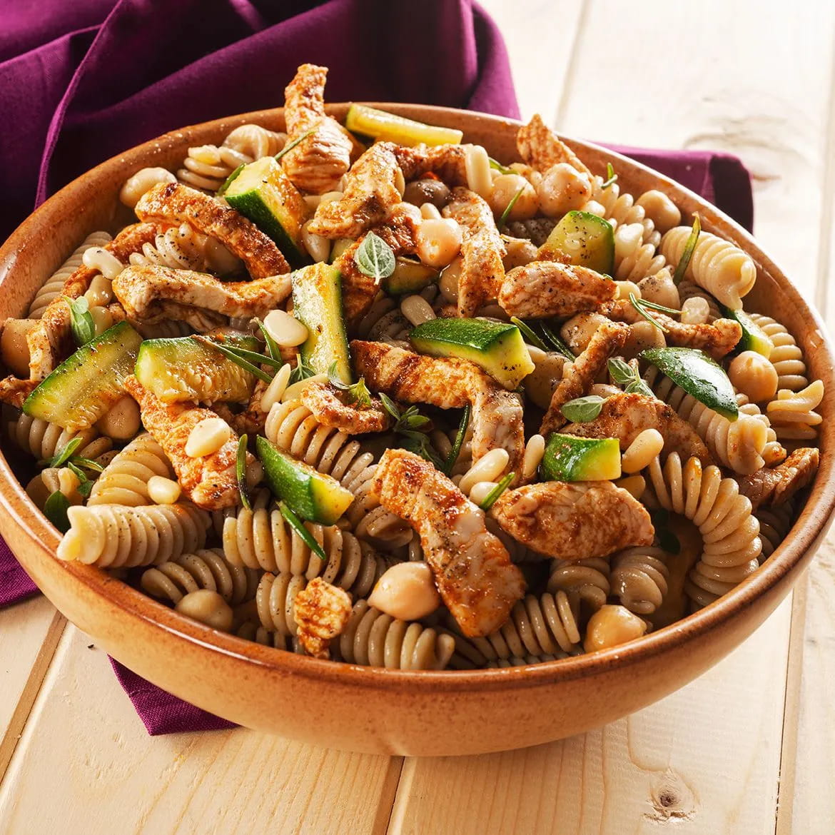 - Vollkorn-Fusilli mit Kichererbsen und Truthahn