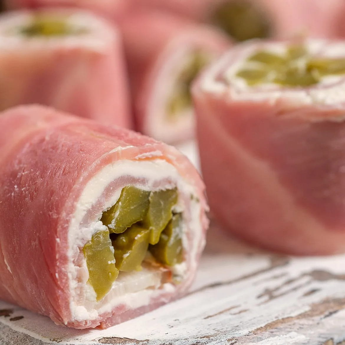 Now take the slices of AIA aeQuilibrium Baked Turkey Breast and, on each one, put a spoonful of goat cheese and olive filling. Roll up the slices on themselves and close them (if you want) with a thread of chives or simply with a toothpick.