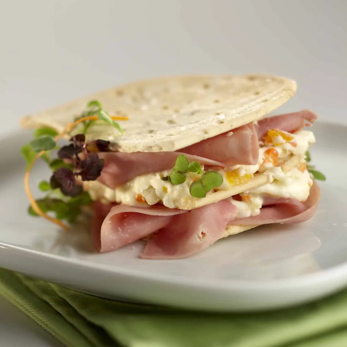 Serve the crunchy cracker sandwich as an appetizer with a glass of prosecco, or with a drink for the afternoon or mid-morning snack.