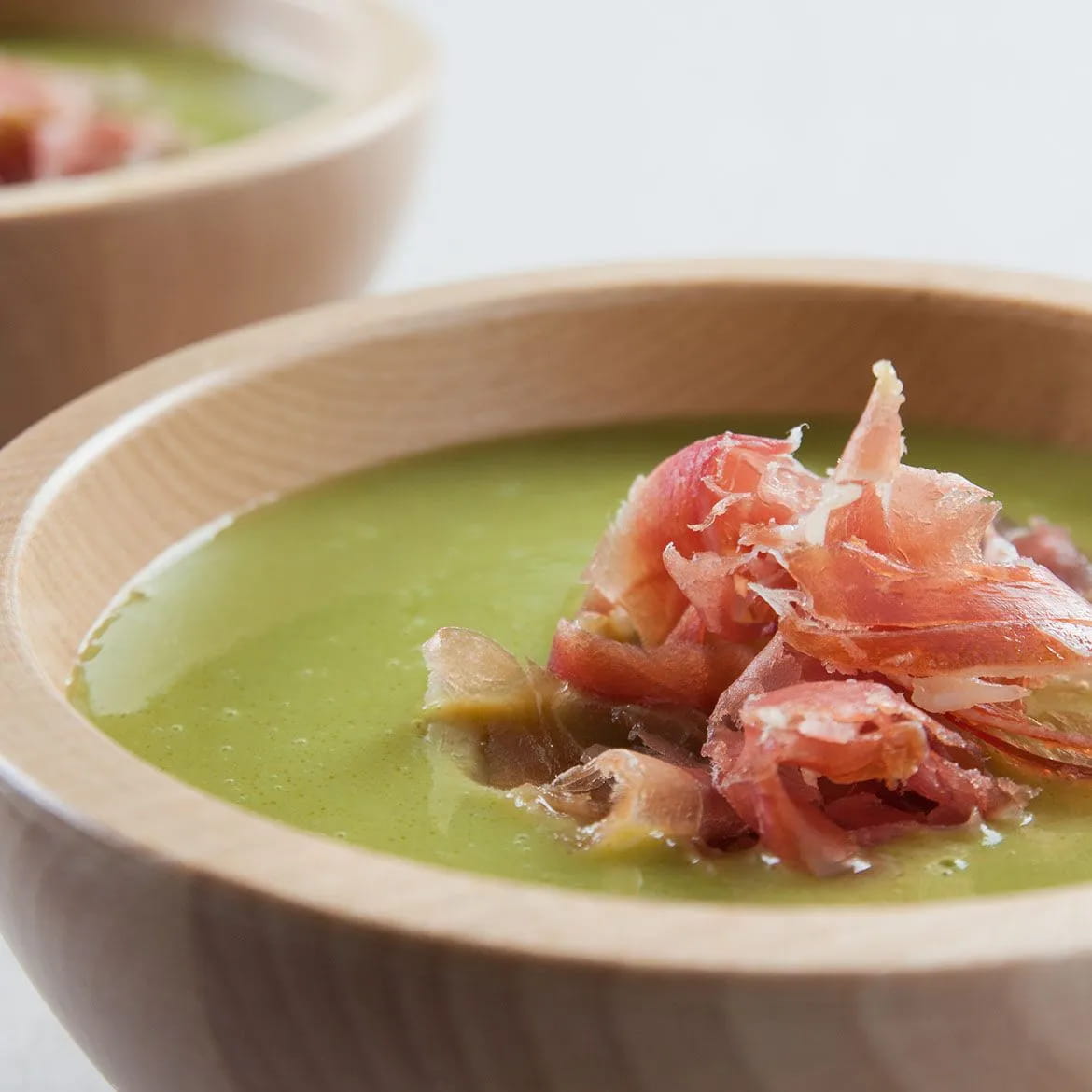 Blanch the slices of AIA Baked Turkey Breast Trancetto in a pan for a few minutes, then cut it into strips and use it to season your pea cream that you will serve warm.