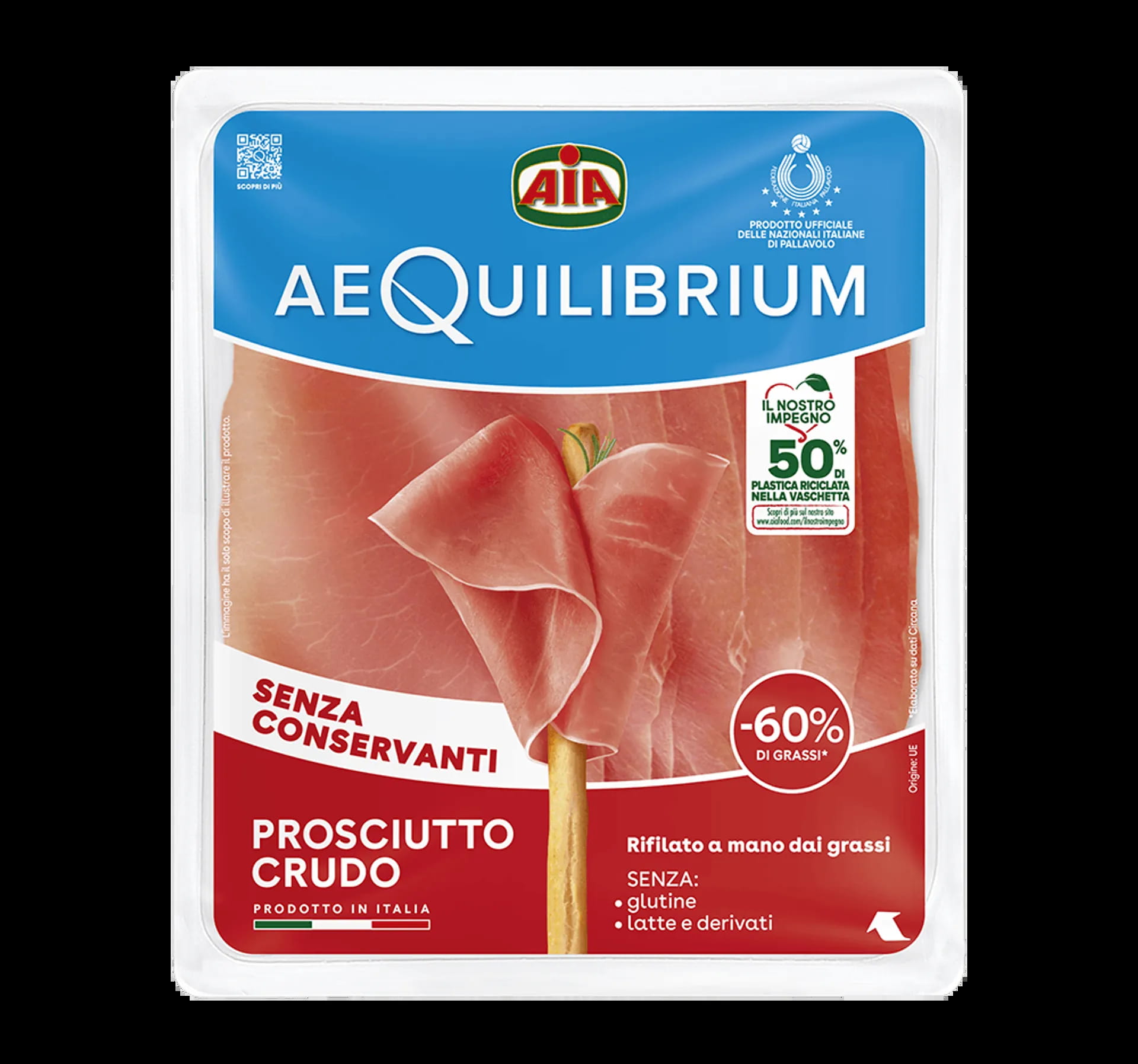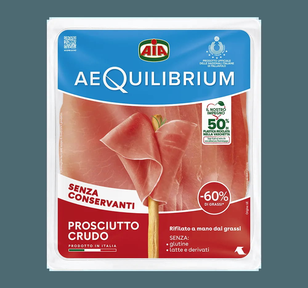 All the flavor of prosciutto crudo with 60% less fat* in an 80g pack designed for anyone who wants to live every day with lightness without giving up taste. No preservatives. No gluten. No milk and dairy derivatives.