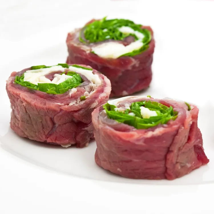 Usually, the carpaccio is presented in slices on a serving dish, it can also be made with vegetables such as zucchini carpaccio for example. Another way to bring carpaccio to the table, with a different presentation, is to wrap it in small rolls to be consumed strictly cold.