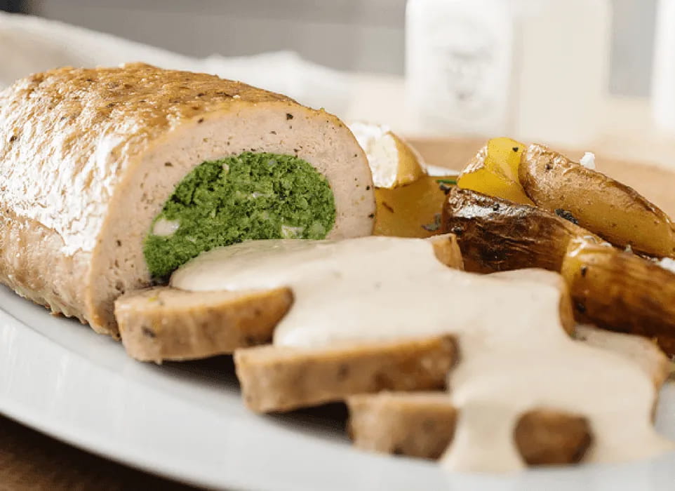 - BonRoll with Spinach, Tuna Sauce and Herb Potatoes