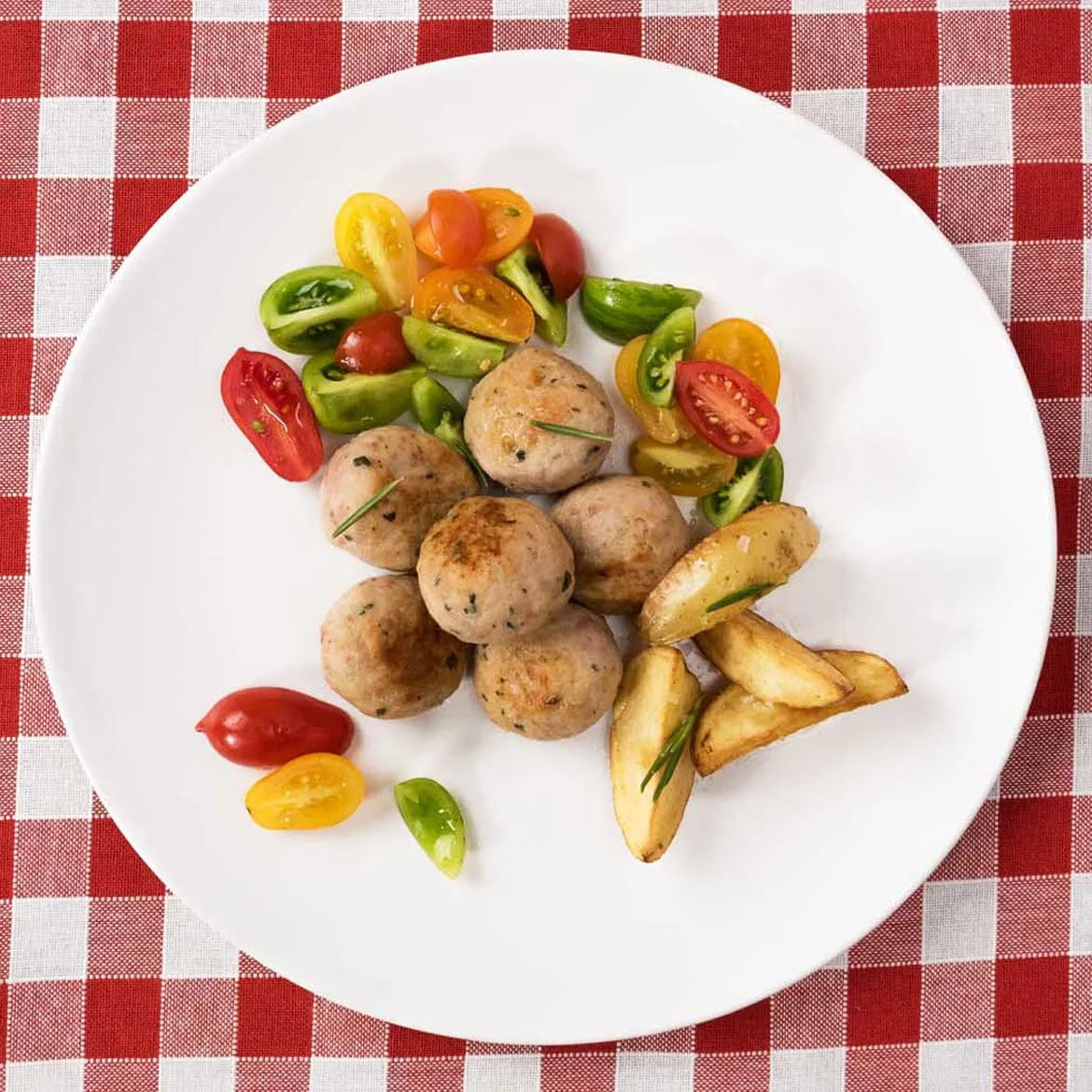 Classic BonRoll Meatballs with Cherry Tomatoes and New Potatoes