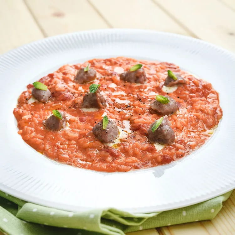 Questa ricetta unisce la cultura culinaria italiana a quella dei paesi nord europei. Il tortino di riso è croccante e contrasta la morbidezza del Petto di tacchino aeQuilibrium AIA, mentre le uova di salmone regalano sapidità al piatto, sapore che è ben bilanciato dalla panna acida.