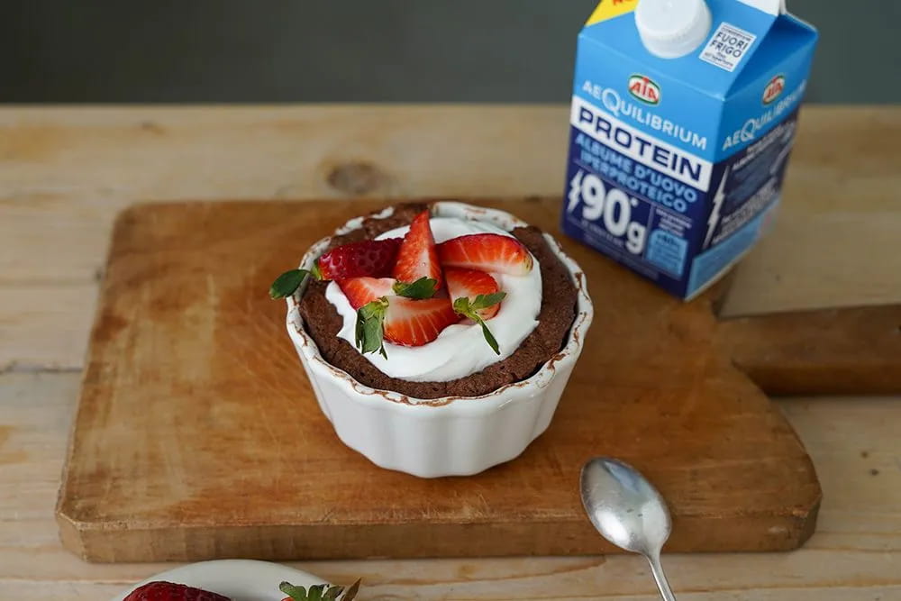 Il tortino proteico al cioccolato è l’ideale per concederti una pausa piena di energia senza rinunciare all’equilibrio nutrizionale. Protagonista della ricetta è l’Albume AeQ PROTEIN, una fonte di proteine di altissima qualità, pratica e versatile. A questo si aggiungono ingredienti naturalmente ricchi di proteine come la farina di mandorle e lo yogurt greco, che contribuiscono non solo a migliorare la consistenza del tortino, ma anche ad arricchirlo di energia. E con il cioccolato, è una vera soddisfazione per il palato!