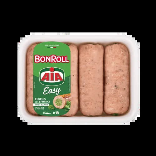 Il polpettone di carne di solo pollo italiano, perfetto per una cena veloce. Easy esiste in due varianti, prosciutto e formaggio e spinaci, nella pratica confezione pensata per due persone.