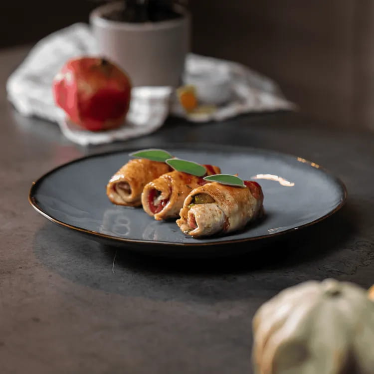 Finalmente, possiamo procedere all'impiattamento. Serviamo i bocconcini caldi e decoriamo con un po' di rosmarino fresco. Un giro di olio a crudo infine darà quel tocco in più al piatto.